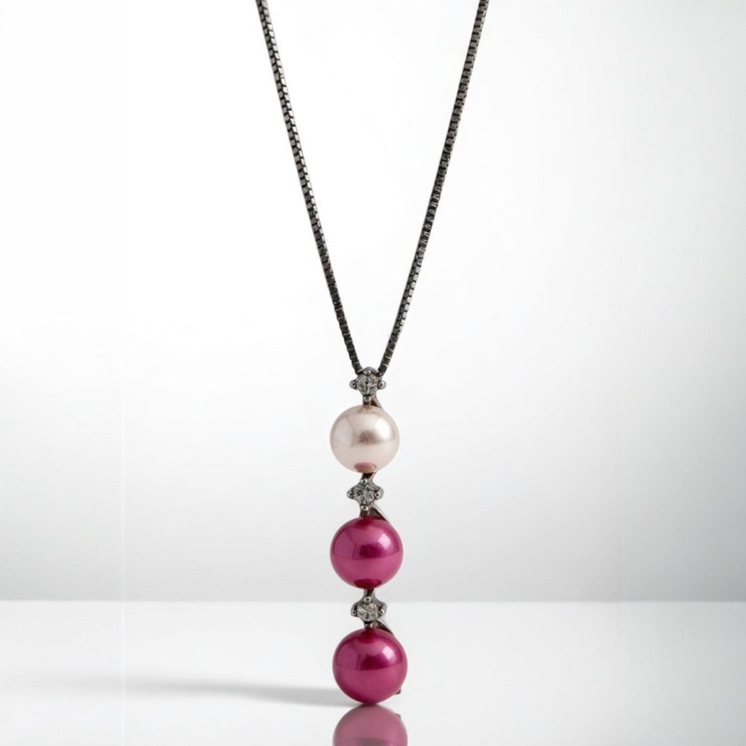 Elevate your look with this elegant 925 Sterling Silver CZ 3 Pearl Pendant Necklace. Perfect for any occasion, this necklace allows you to add a personal touch with your choice of pearls. During our live event, we’ll reveal your surprise pearl color, choose from your pearl vault or you can choose from the available color palette below.