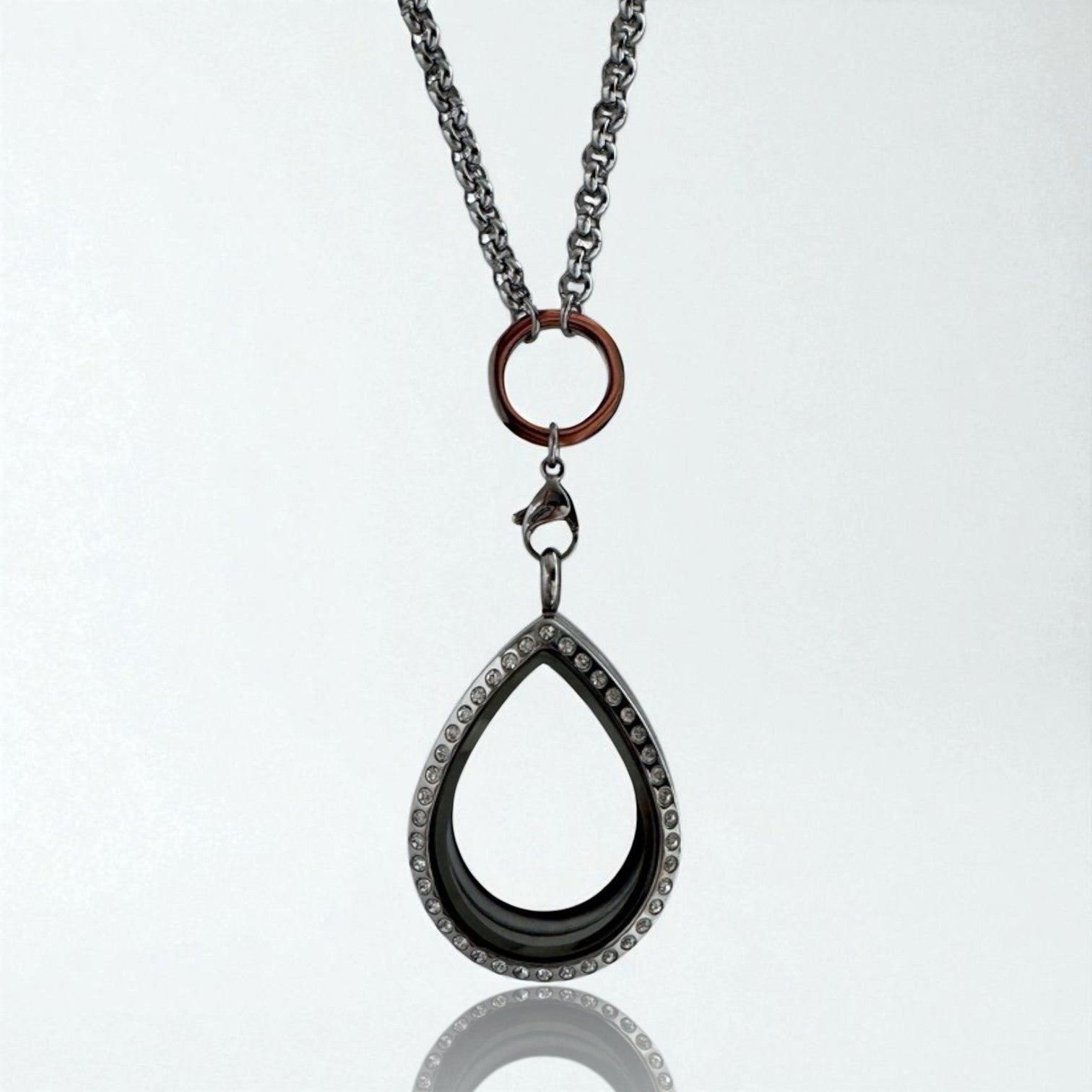 Multicolored pear shaped cage pendant for pearls ranging up to 8mm in size. Pearls can be interchanged to match what you are wearing for the day.