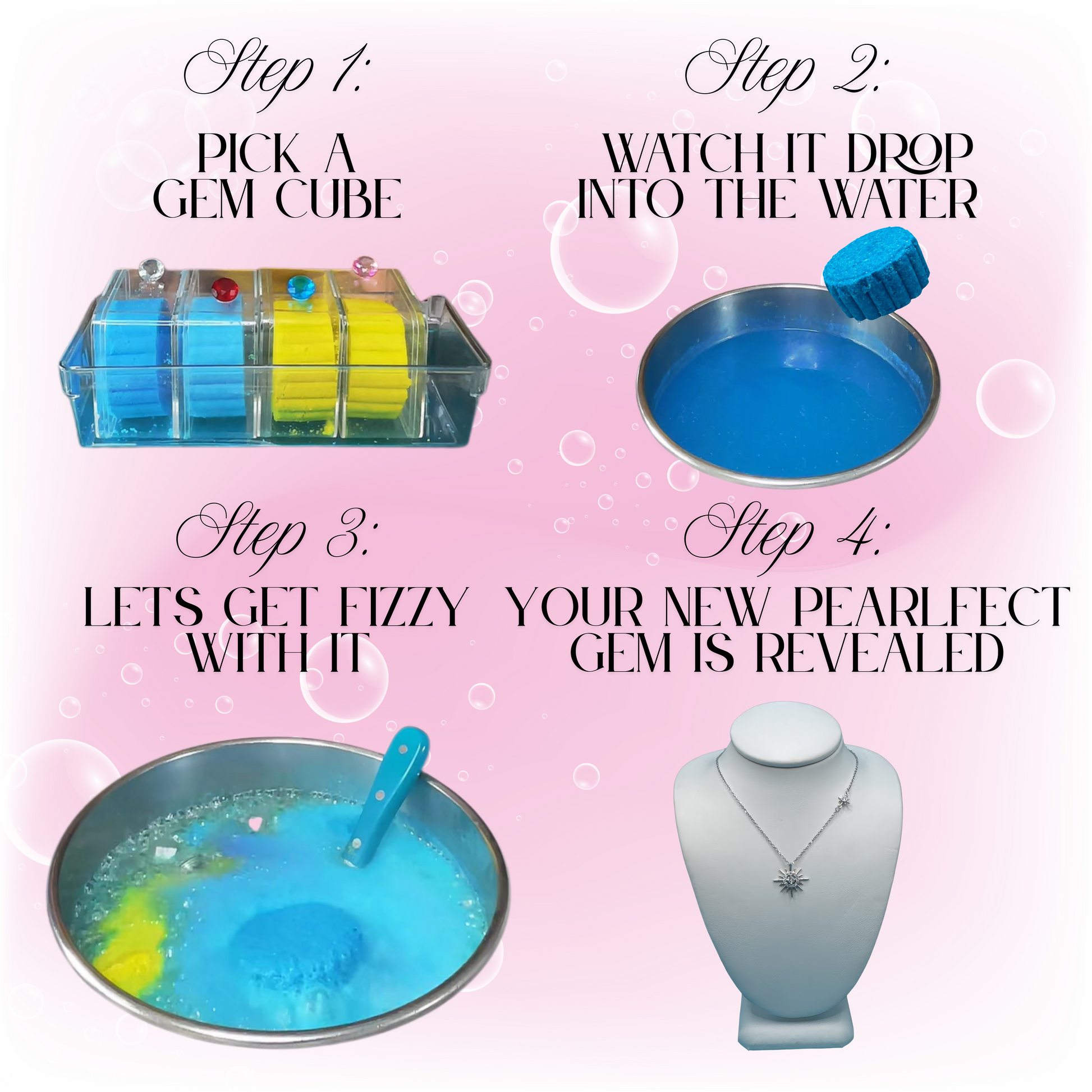 We will drop your fizzy into the water, hear it sizzle and out comes your beautiful 925 Sterling Silver Necklace. Cannot wait to see the gorgeous necklace your fizz bomb reveals!